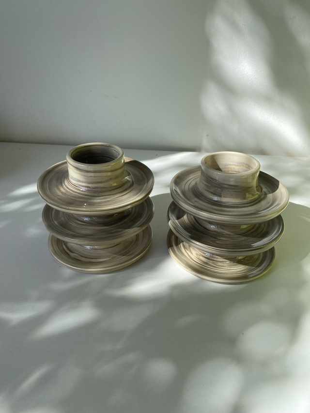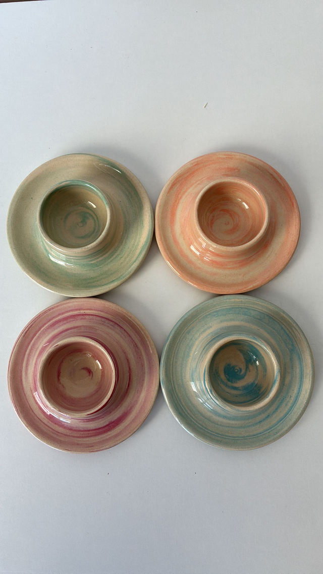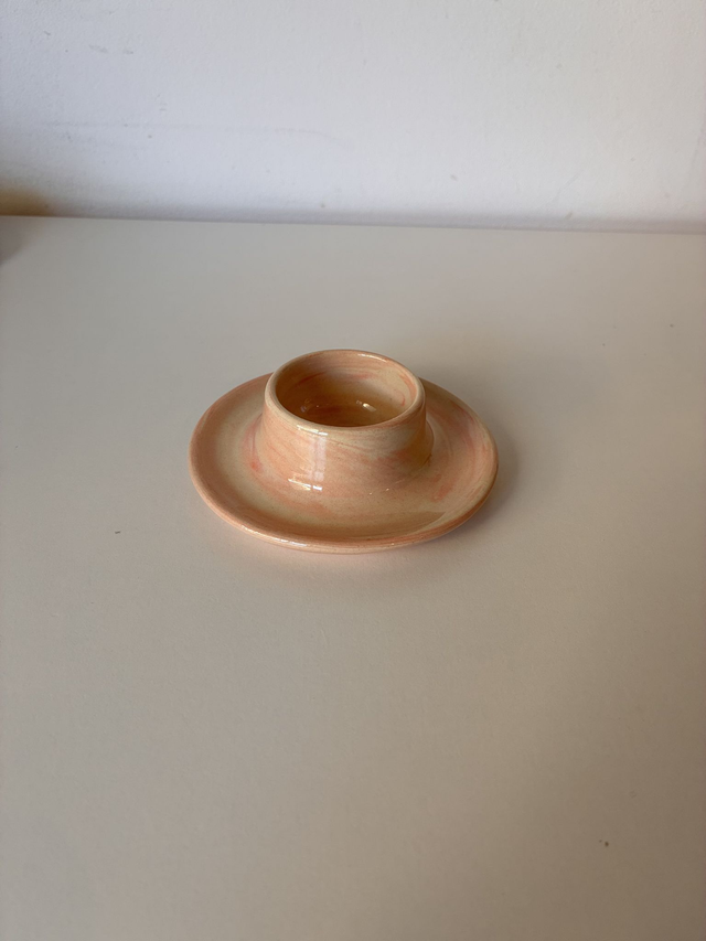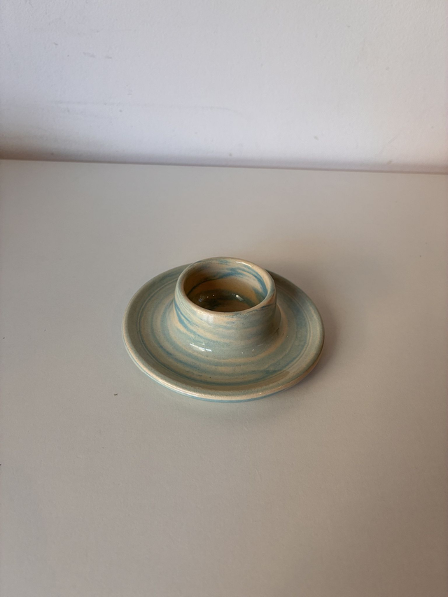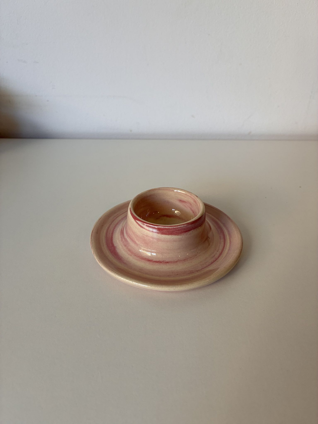 Ce coquetier est tourné à la main à partir d’un mélange de terres colorées. Chaque pièce est unique, marquée par ses marbrures naturelles et ses teintes douces, issues de la superposition de terres brutes.