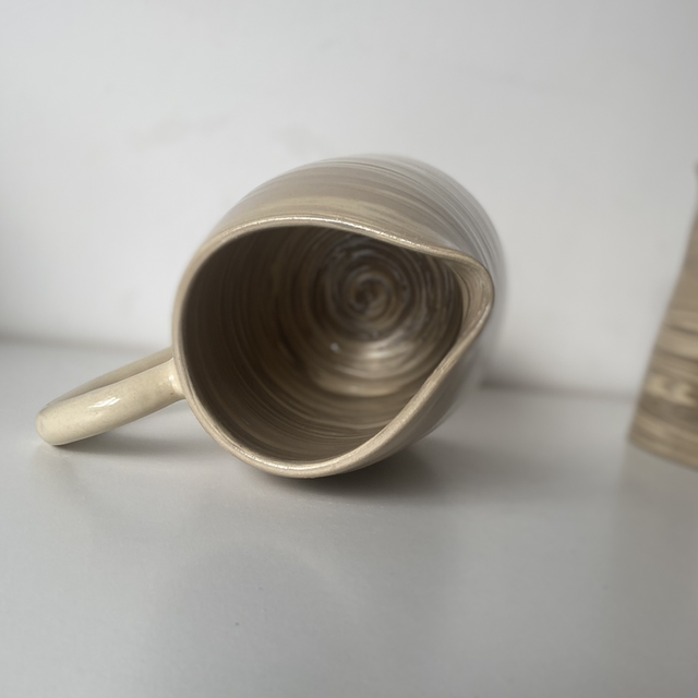 Tournées à la main dans mon atelier, ces cruches en grès sont réalisées selon la technique de la terre mêlée. Aucune cruche ne se ressemble : chaque pièce est marquée par la danse de la matière.